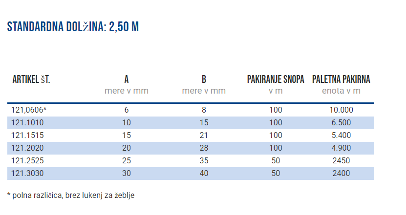 Standardna dolžina: 2,50 m